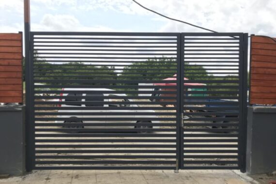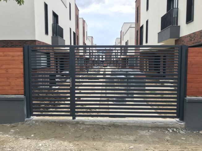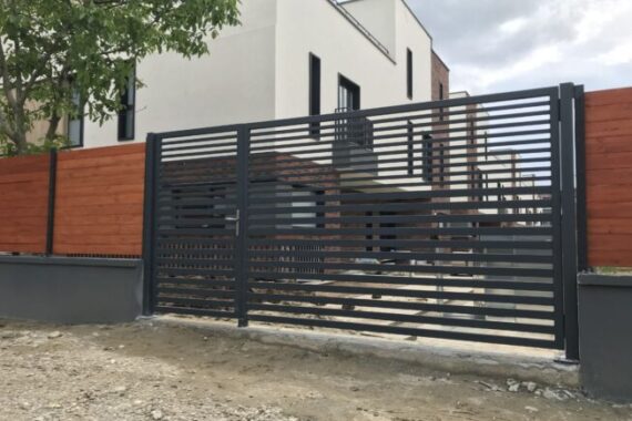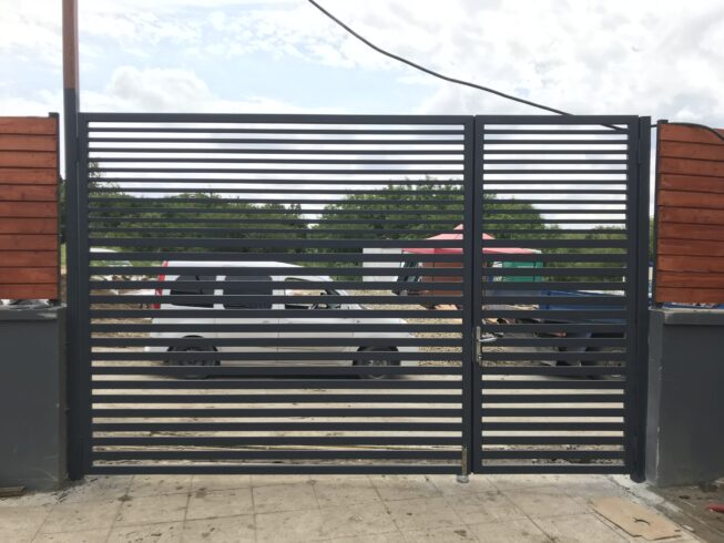 Poarta batanta auto cu poarta pietonala alaturataStalpi teava 80x80mmBete orizontale teava 30x20 si 60x20 mmFeronerie inclusa