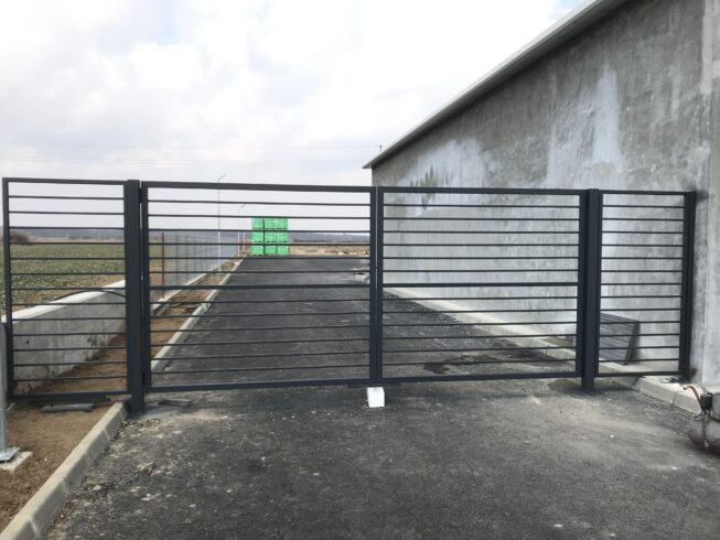Porti auto batante 5x2mRealizate din teava 60x40mmBete orizontale din teava 20x20mm cu spatiu de 100mmStalpi de sustinere din teava 80x80mm incastrati in pahare de beton armatKit automatizare